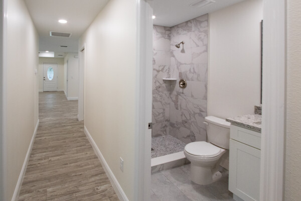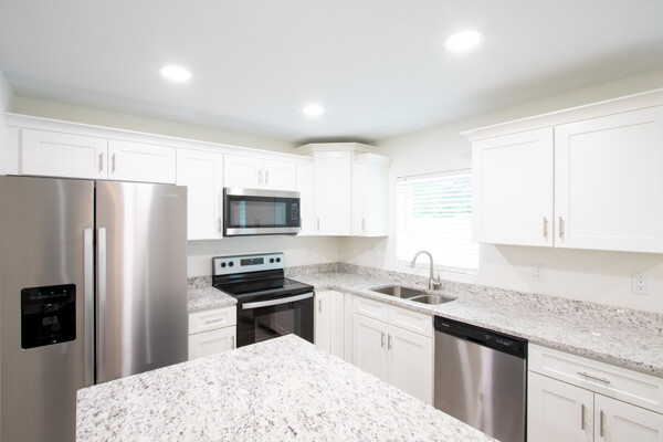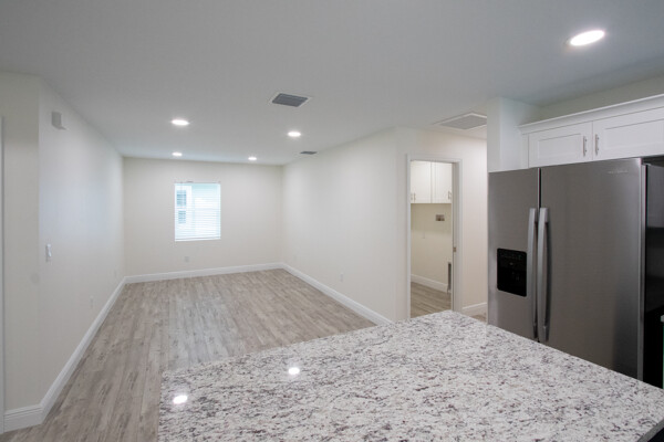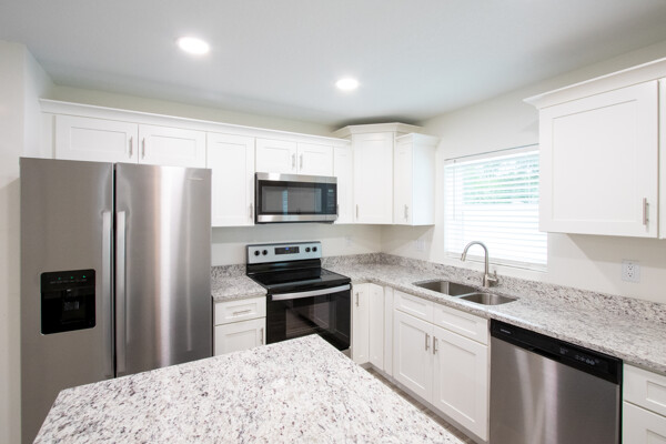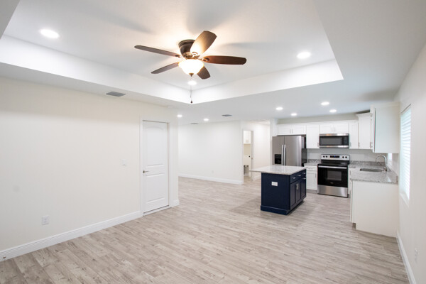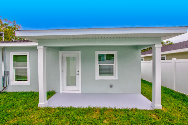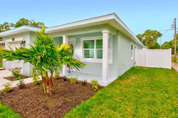 One or more photo(s) has been virtually staged. BRAND NEW CONSTRUCTION!! Don't miss this gorgeous 3 bedroom 2 bathroom 1 car garage block home in fabulous St Pete! This home boasts many amazing features like top quality plank laminate floors throughout, new designer kitchen with shaker cabinets, granite counter tops, stainless appliances and recessed lighting! Both bathrooms flaunt custom tile work and the master bath even has huge 20 X40 porcelein tile on the shower walls! BEAUTIFUL!! The double paned Jeldwen windows will keep you cool in the heat and warm in the winter! The master bathroom features a large walk in closet and double undermount sinks in the extended granite counter top! There are ceiling fans throughout and custom 6 base boards on all the walls! Relax on the covered rear patio and watch the kiddos or furry friends run around safely inside the new vinyl fenced back yard! You'll even love the tropical landscaping outside! This house screams elegance! Just bring your furniture and move right in! Schedule your showing today because this one will not last long!!